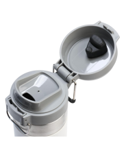 La tapa está diseñada con un botón pulsador que abre la boquilla en la parte superior. Puedes tirar esto en tu mochila sin preocuparte.